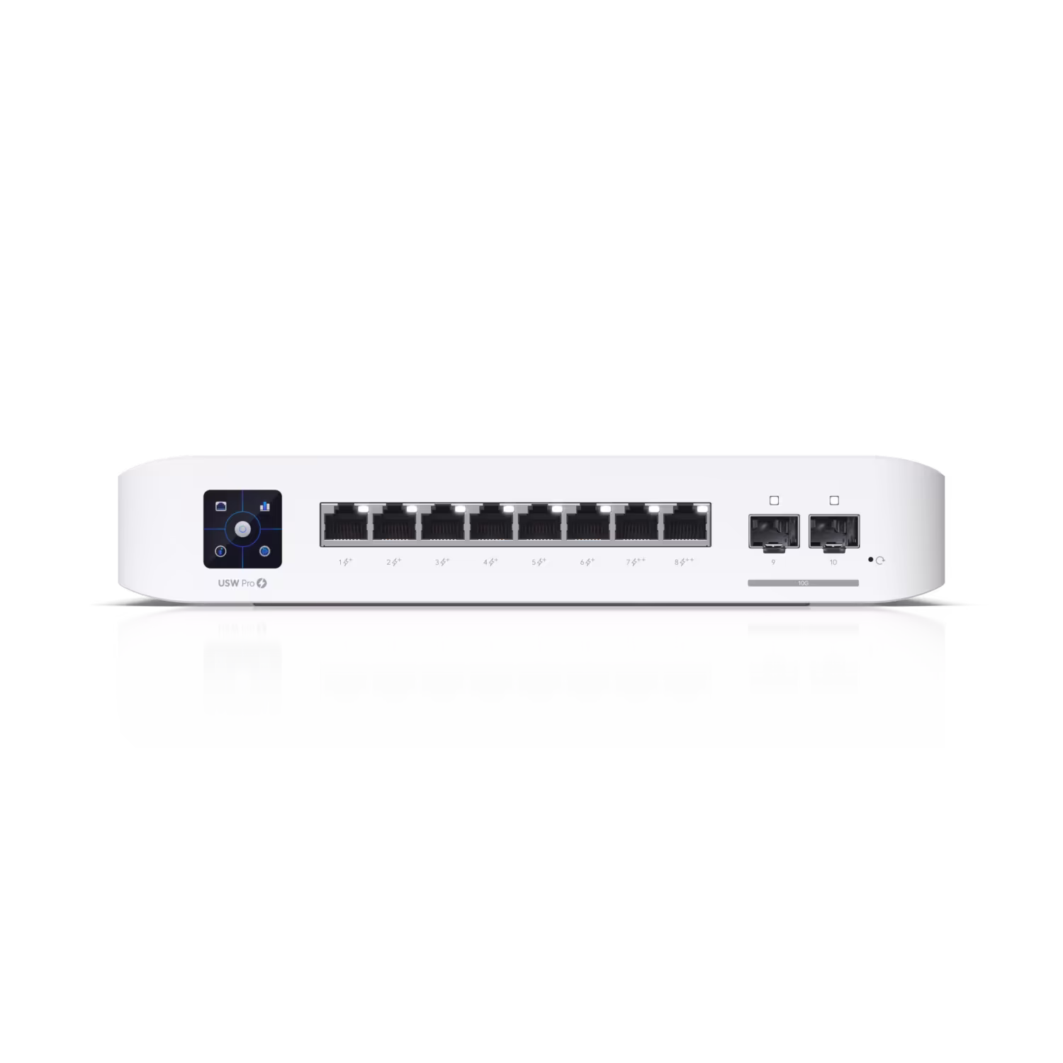 Ubiquiti- Professional 8 PoE USW-Pro-8-PoE An 8-port, Layer 3 switch with PoE+ and PoE++ output.